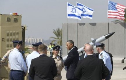 M. Obama a ensuite inspecté une batterie du système antimissile Iron Dome, financé par les Etats-Unis.